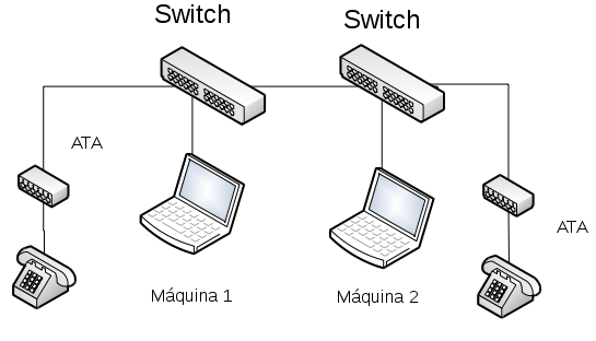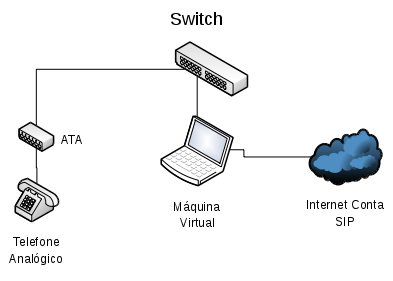 - Ligação entre o telefone ligado ao ATA e o SoftPhone.